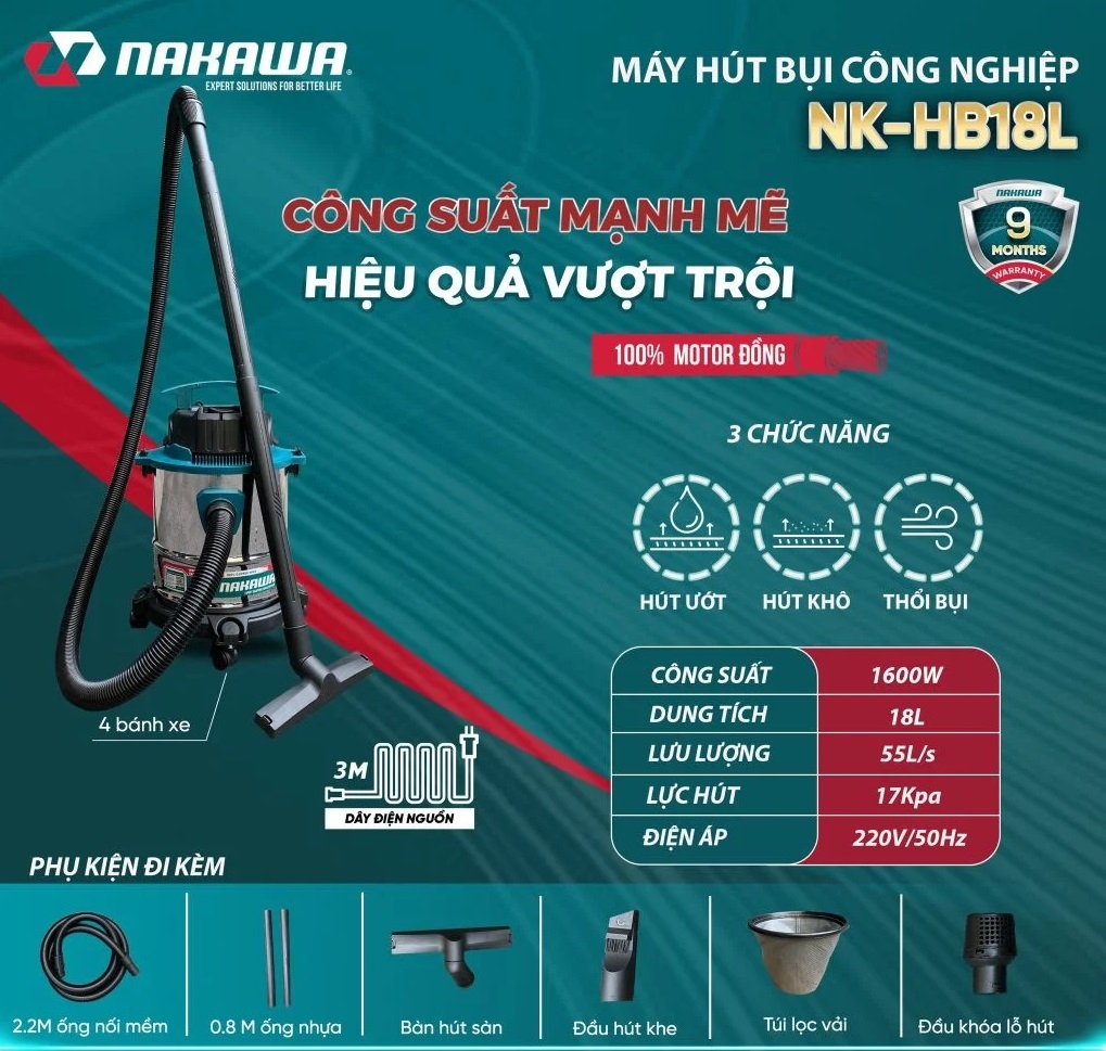 2. Ưu điểm nổi bật của máy hút bụi công nghiệp NAKAWA NK-HB18L