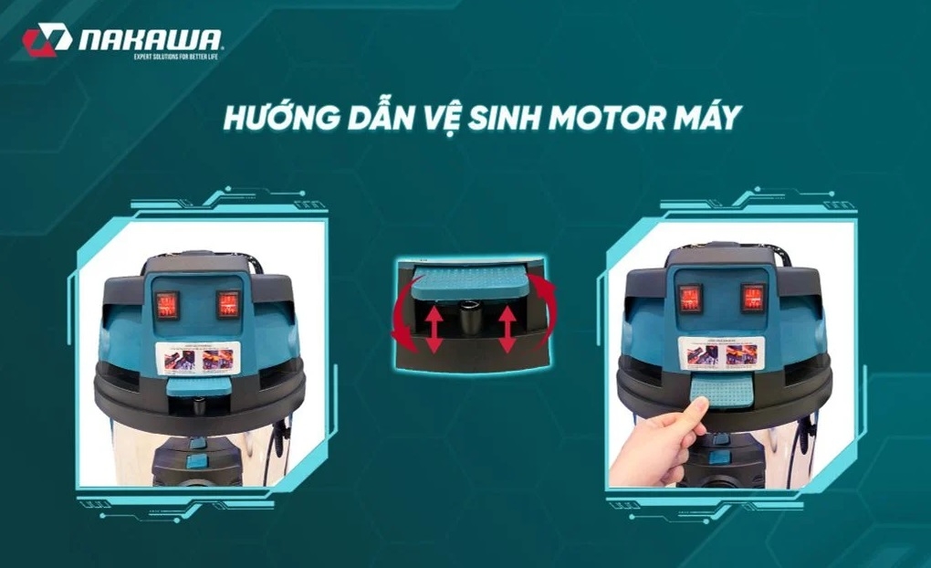 Một điểm đặc biệt ở máy hút bụi công nghiệp NAKAWA NK-HB70L đó chính là nút lắc bụi được thiết kế vô cùng thông minh hỗ trợ bạn vệ sinh motor máy. Chỉ với thao tác ấn và giữ nút lắc bụi 2 giây, máy sẽ tự động giũ bụi dính ở motor máy. Sau đó bạn nhả nút chờ 5 giây và lặp lại thao tác này 5 lần, máy sẽ hoạt động hiệu quả hơn sau một thời gian dài sử dụng.