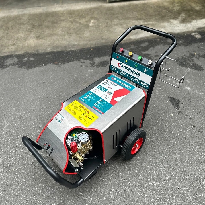 Máy phun áp lực cao công nghiệp Nakawa TX-75 với công suất lên đến 7500W, áp lực tối đa là 3500PSI, máy có thể dễ dàng đánh bay mọi vết bẩn, vệ sinh xe máy, ô tô, hồ bơi, làm sạch sân vườn, các thiệt bị máy móc,... một cách nhanh chóng, giúp người dùng tiết kiệm công sức và thời gian hiệu quả.